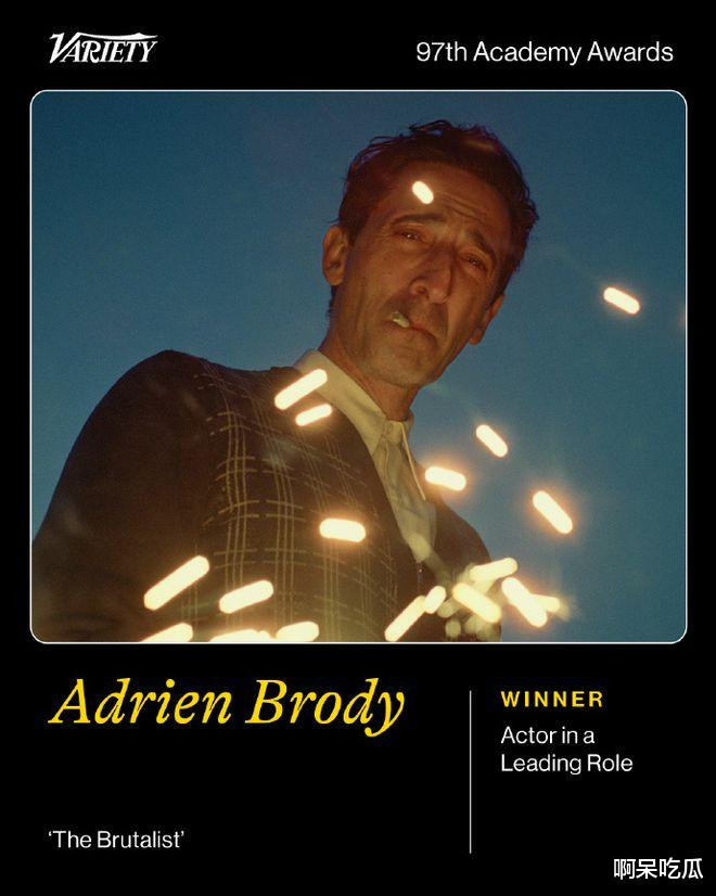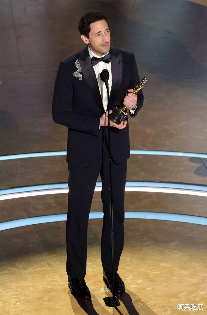 阿德里安·布劳迪二封影帝的片刻,杜比剧院穹顶的纳米投影重现了2003年他吻小金东谈主的青涩面貌。