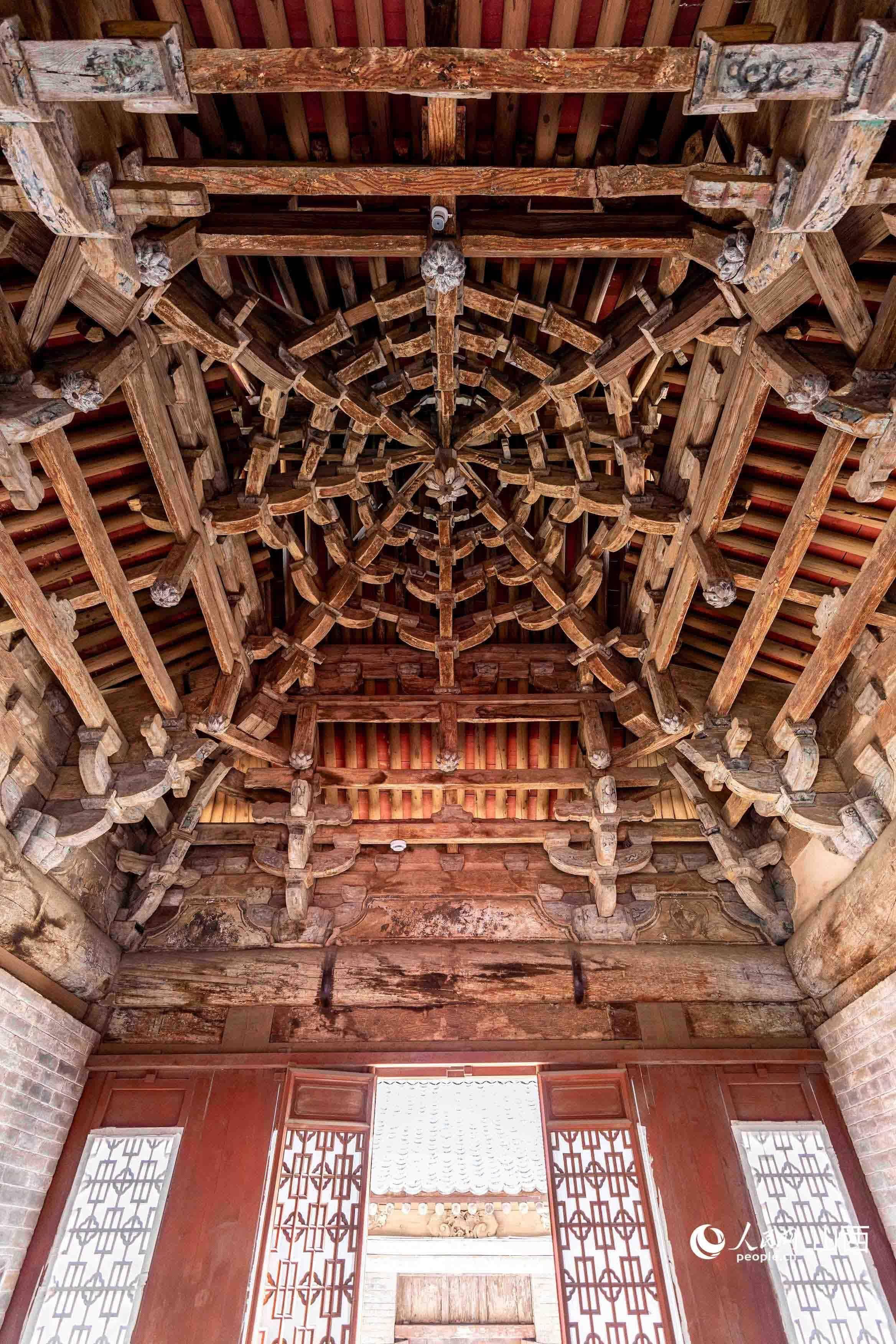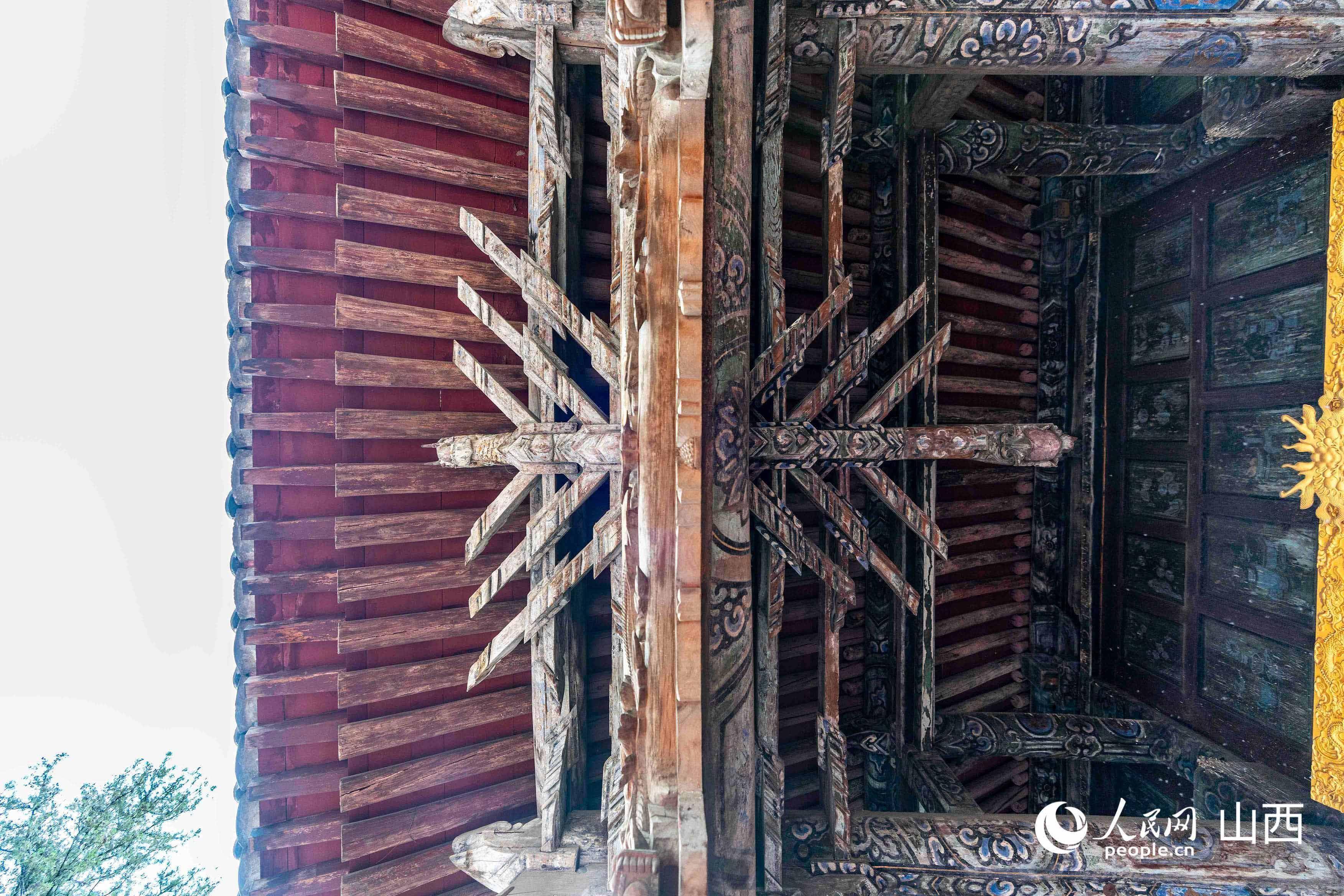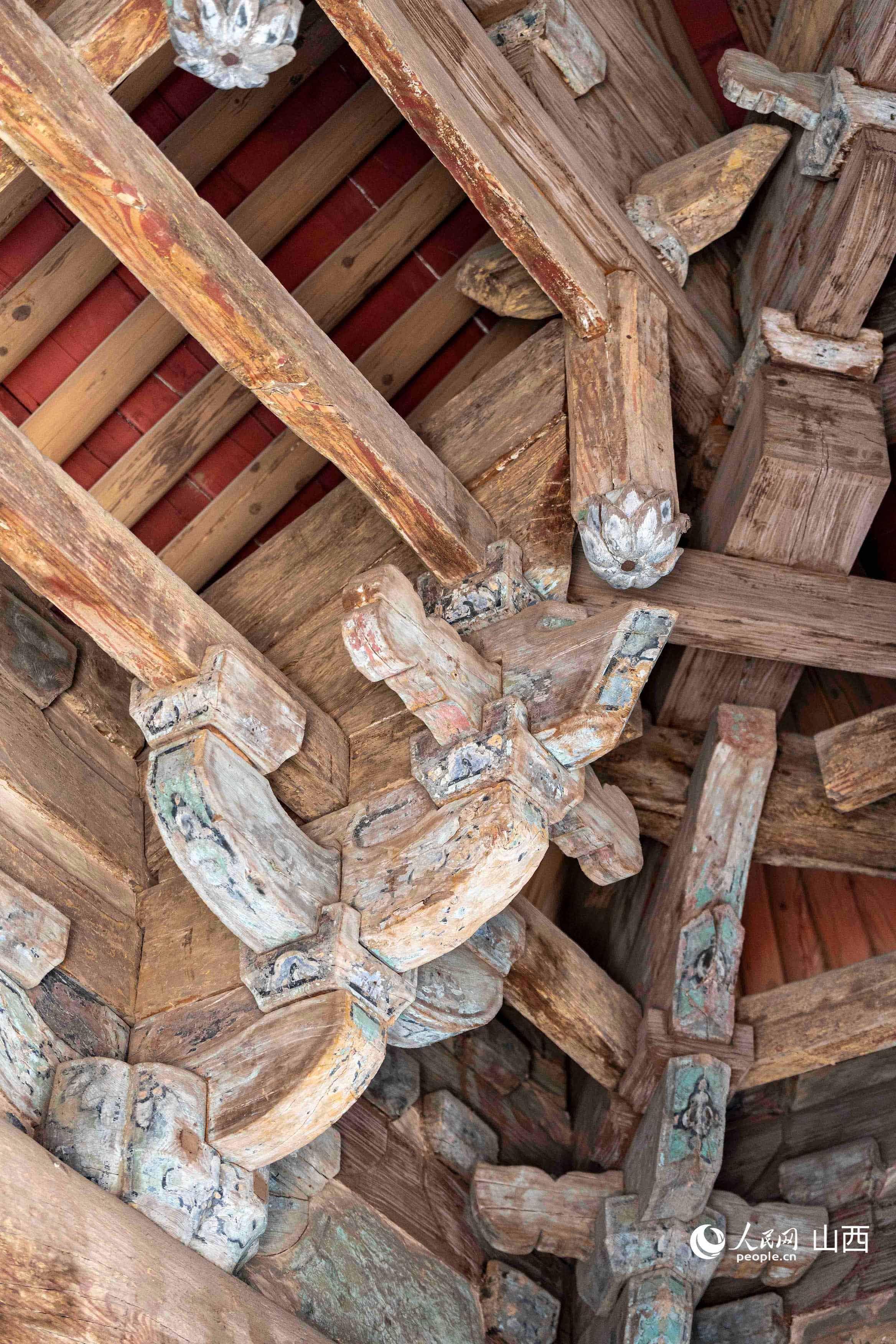 无梁殿是古中庙的中枢建立,亦然世界独一以元代木构入选世界要点文物保护单元的炎帝祭祀建立。无梁殿着手功能实为戏台,1.2米高的台基抬升谋略,使正殿神灵可“鸟瞰”祭祀乐舞。转角斗拱上的木雕角神构件,虽不承重却暗含古东谈主设角神以集千钧之力相沿建立,祈求坚固经久的营造颖慧。