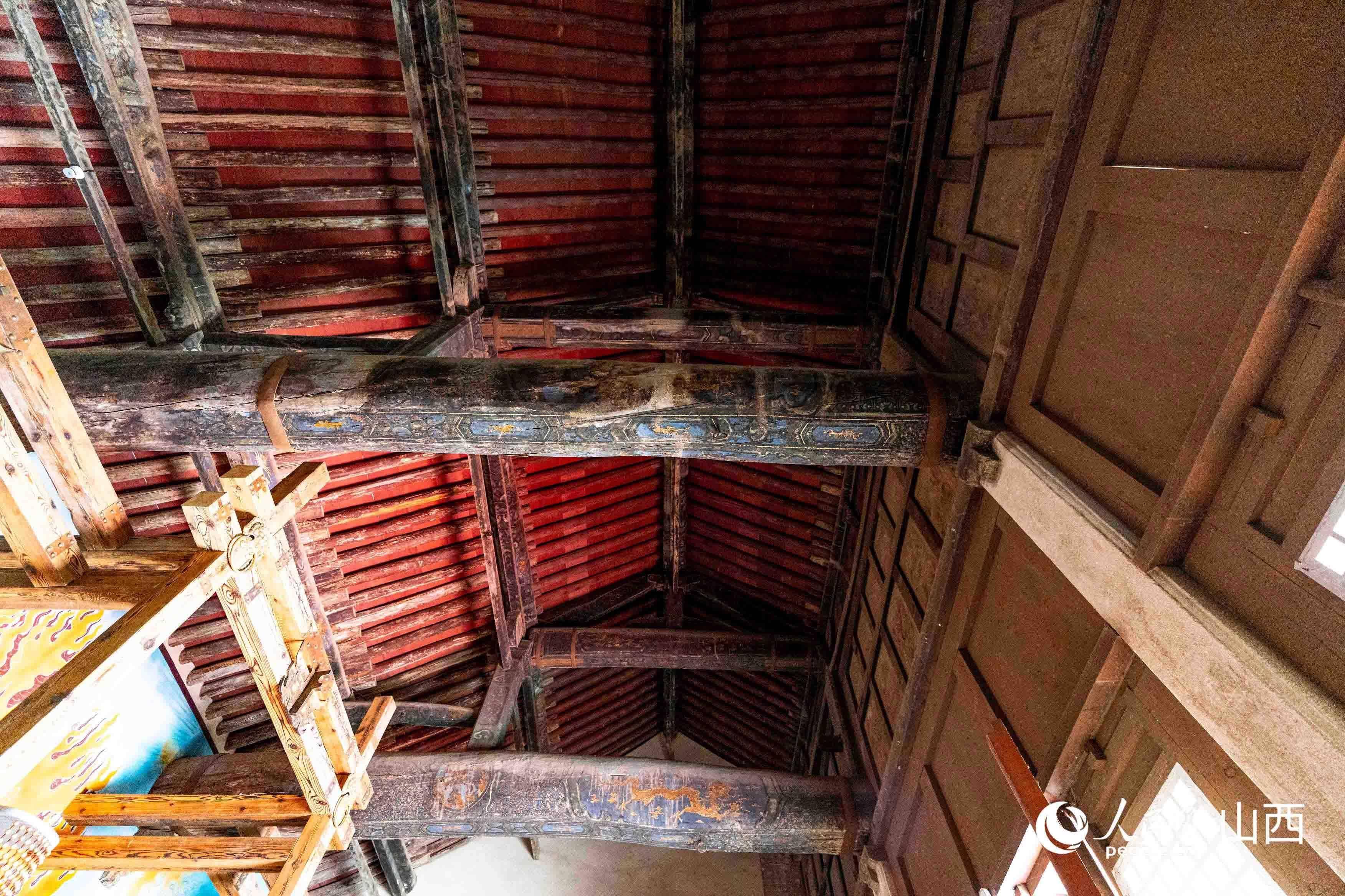 清康熙九年《重修炎帝庙碑》详载“易梁换柱,施彩绘以彰神威”的修缮经过。彩画一词可纪念自宋代《营造尺度》,意为“施之于木构,彰之于五色”的工艺体系,既为“饰面之华”,亦为“护木之甲”。现有梁架青绿为底、间施朱砂与石黄的彩画,正是彼时彩画技法的实证。