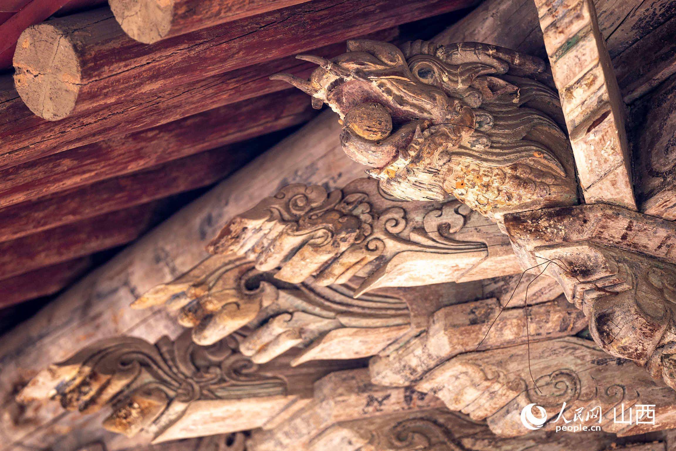 正殿台基石雕陡板保留“元至正四年”编年,印证其始建年代。殿内主体梁架呈现明代格调,五架梁与三架梁精密咬合,前檐八根方柱四角混棱起线,柱头雀替通间雕花纵向结合,耍头斫成龙首形,变成刚柔并济的力学体系。后墙两根元代石柱直抵脊槫,柱头斗拱保留《营造尺度》中“材分八等”的宋金遗凮。踏谈两侧殿基石上浅浮雕镂着“莲花稚拙”“凤凰牡丹”“神话故事”等图案。
