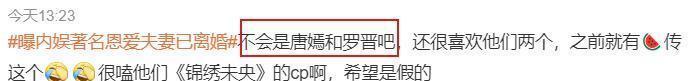 在开阔被猜度的妻子档中,唐嫣和罗晋飞快成为主要怀疑对象。