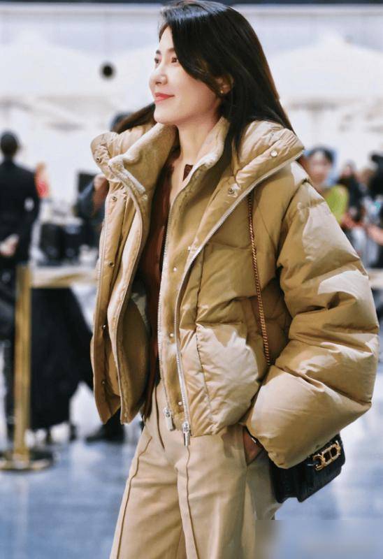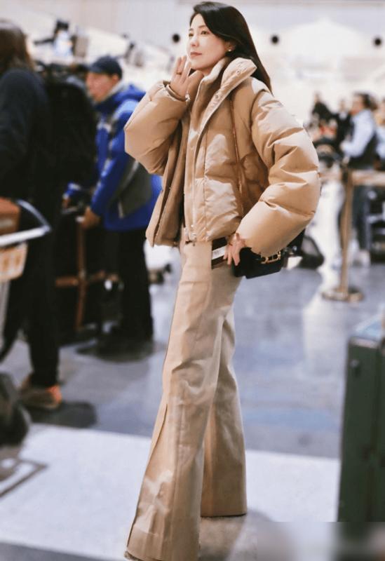 曾黎的短款羽绒服搭配微喇叭裤是一种止境前锋的造型,短款羽绒服展现出她的形体上风, 而微喇叭裤则不错拉长腿部线条,让合座造型愈加完好。