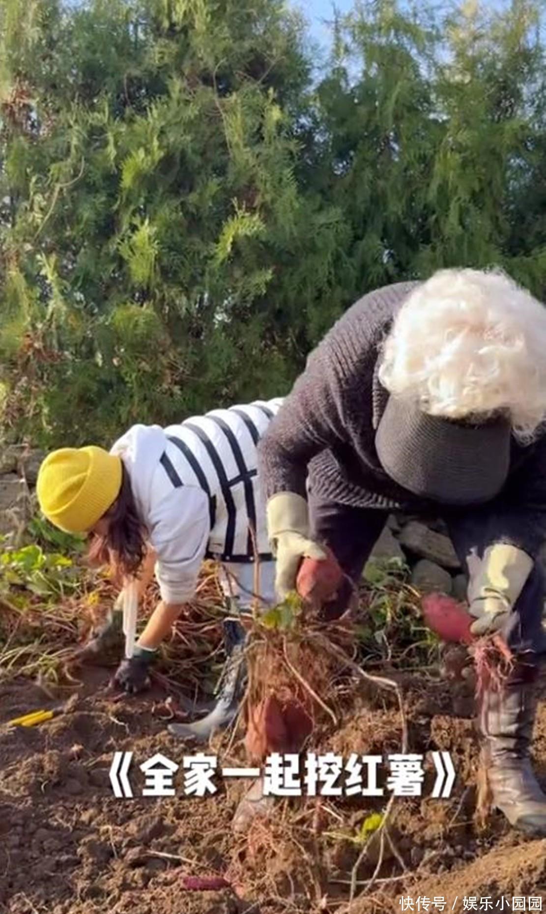 镜头里的蔡琳穿戴白色卫衣配淡色牛仔裤,头戴黄色诚挚帽,满盈莫得明星架子。她跟在挖掘机后头,弯腰捡起红薯的动作练习又天然,常常常举起一个巴掌大的红薯对着镜头笑,眼里的光比荧幕上更亮堂。8岁的女儿珉宇像个小帮手,跟在外婆和姆妈身边,每发现一个大红薯就抖擞地呐喊,还主动把红薯装进竹筐里,高高壮壮的小神气相等懂事。