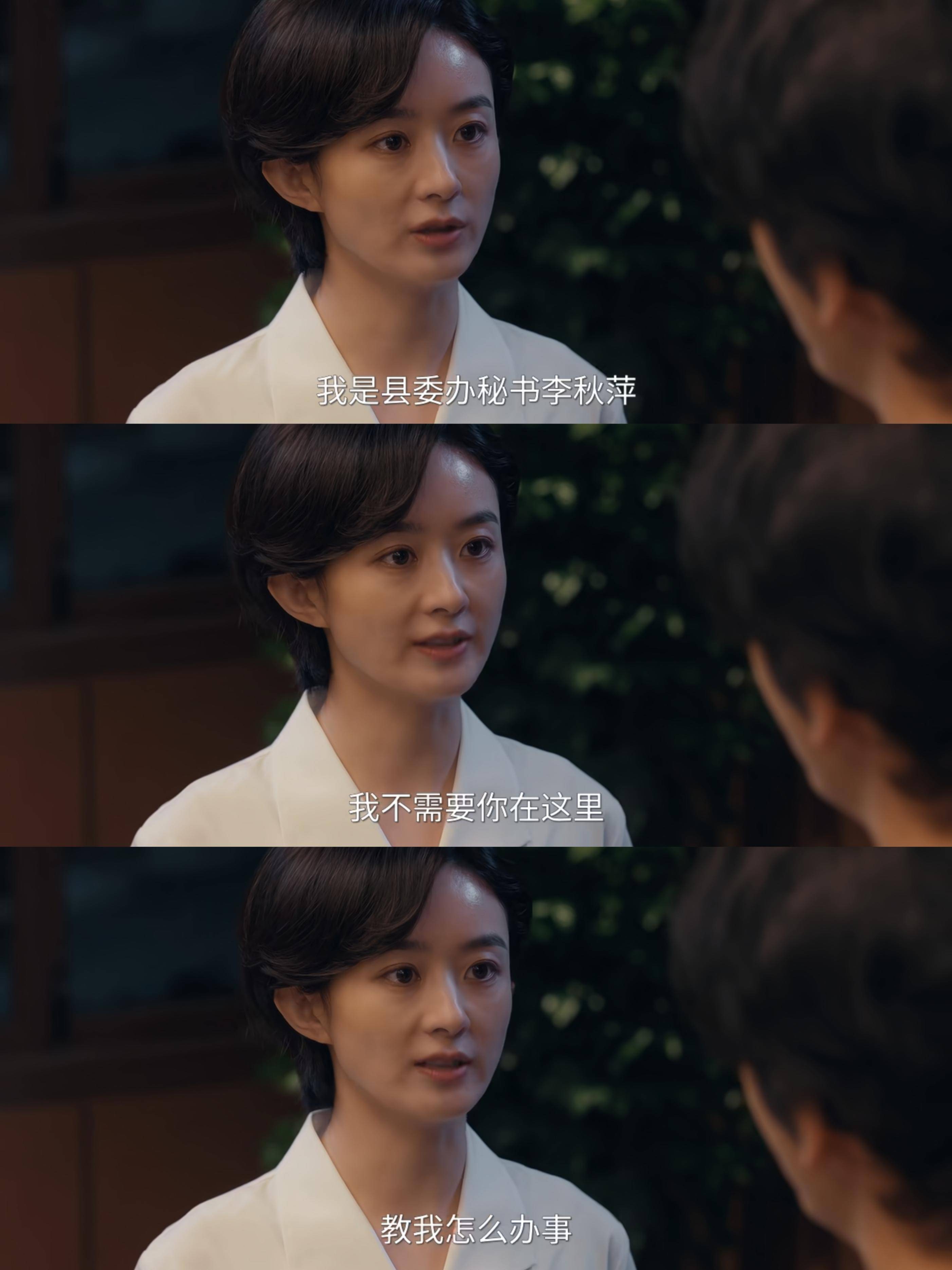 剧中赵丽颖短发,白衬衫,军绿色的裤子,加上乐不雅干练的作念事作风,很好地演绎了李秋萍这个心胸空想,年青有为的镇长扮装。