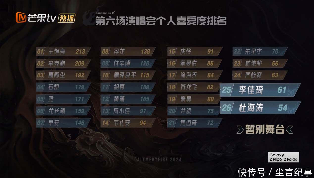 和他们变成赫然对比的是,有3位哥哥的东谈主气排行急速下滑,一位是胡夏,连跌5位,排到了第11名,初度跌出前十,另一位是徐海乔,连跌9位,排到了第17名,符龙飞也连跌6位,排到了第18名。