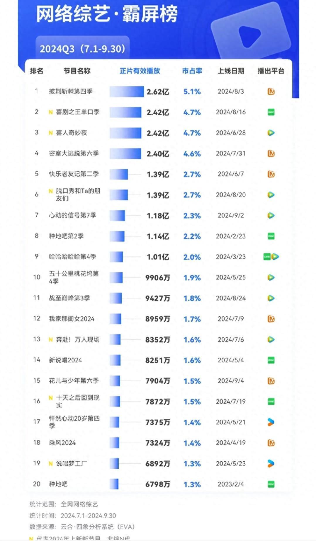 节目刚播出第10期,蓄积播放量已摧毁61亿,比及节目播完,摧毁70亿将莫得任何悬念,即使从正片灵验播放量来看,《披哥4》亦然第3季度统统网播综艺中最高的。