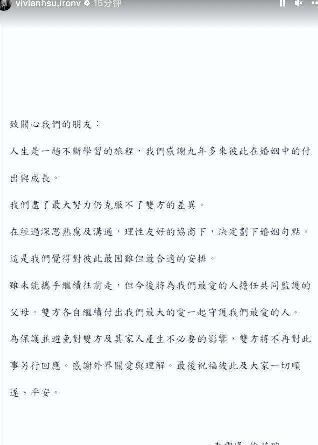 还有徐若瑄和丈夫离异这件事。他们全部走过了低谷,终末还是因为各式各别分开了。离异后徐若瑄独自带着犬子生计,这亦然很阻扰易的。她得一个东谈主面临好多事情,但是她还是闭塞地把犬子护理得很好。