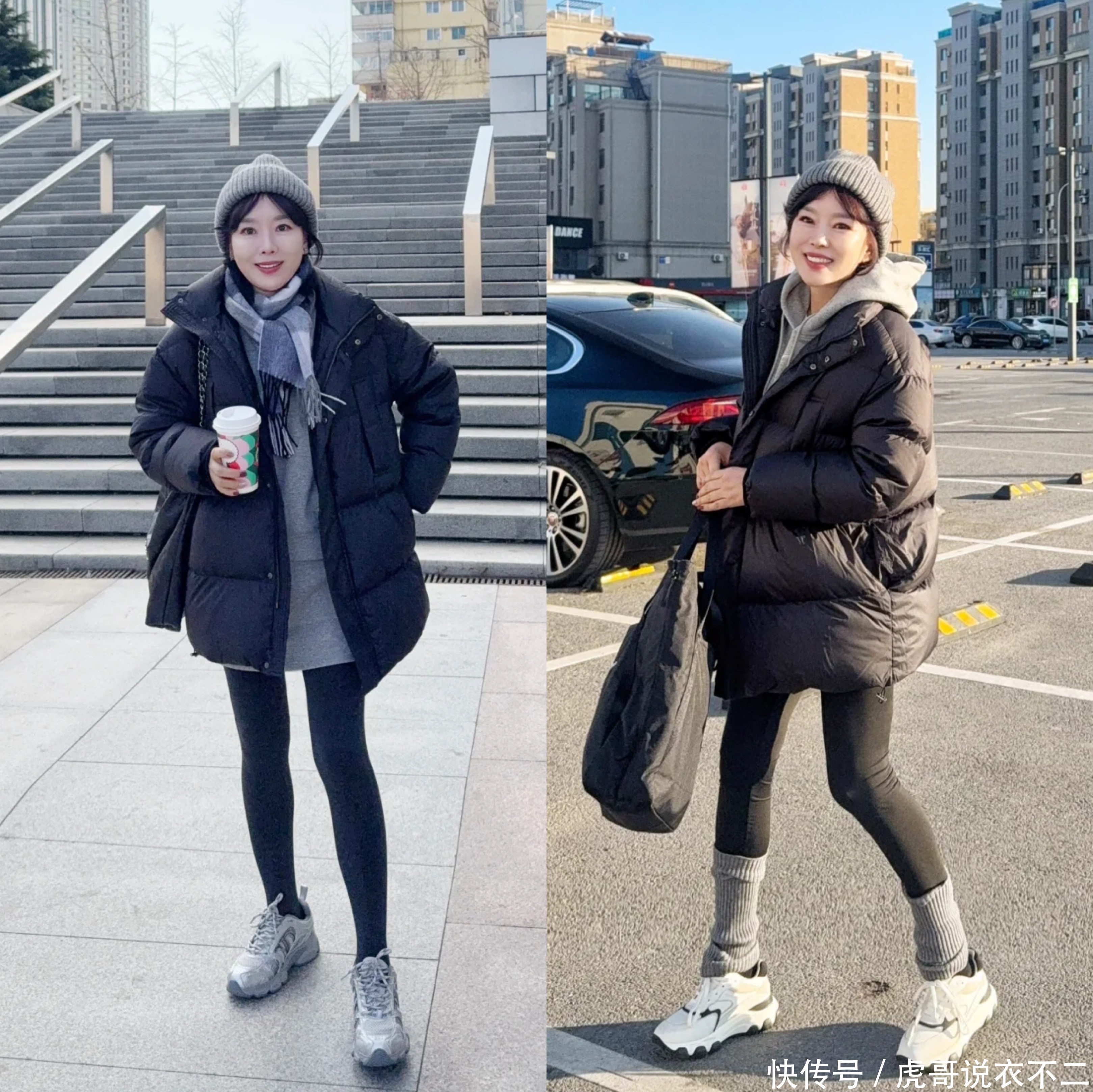 经典的下衣失散任何季节齐可以阐述,亦然经典不外时的穿搭造型,宽松欣慰的羽绒服叠穿宽松欣慰的连帽卫衣,再搭配打底裤或者瑜伽裤,上半身遮肉下半身显瘦,保和善显瘦兼具的冬季穿搭规矩。