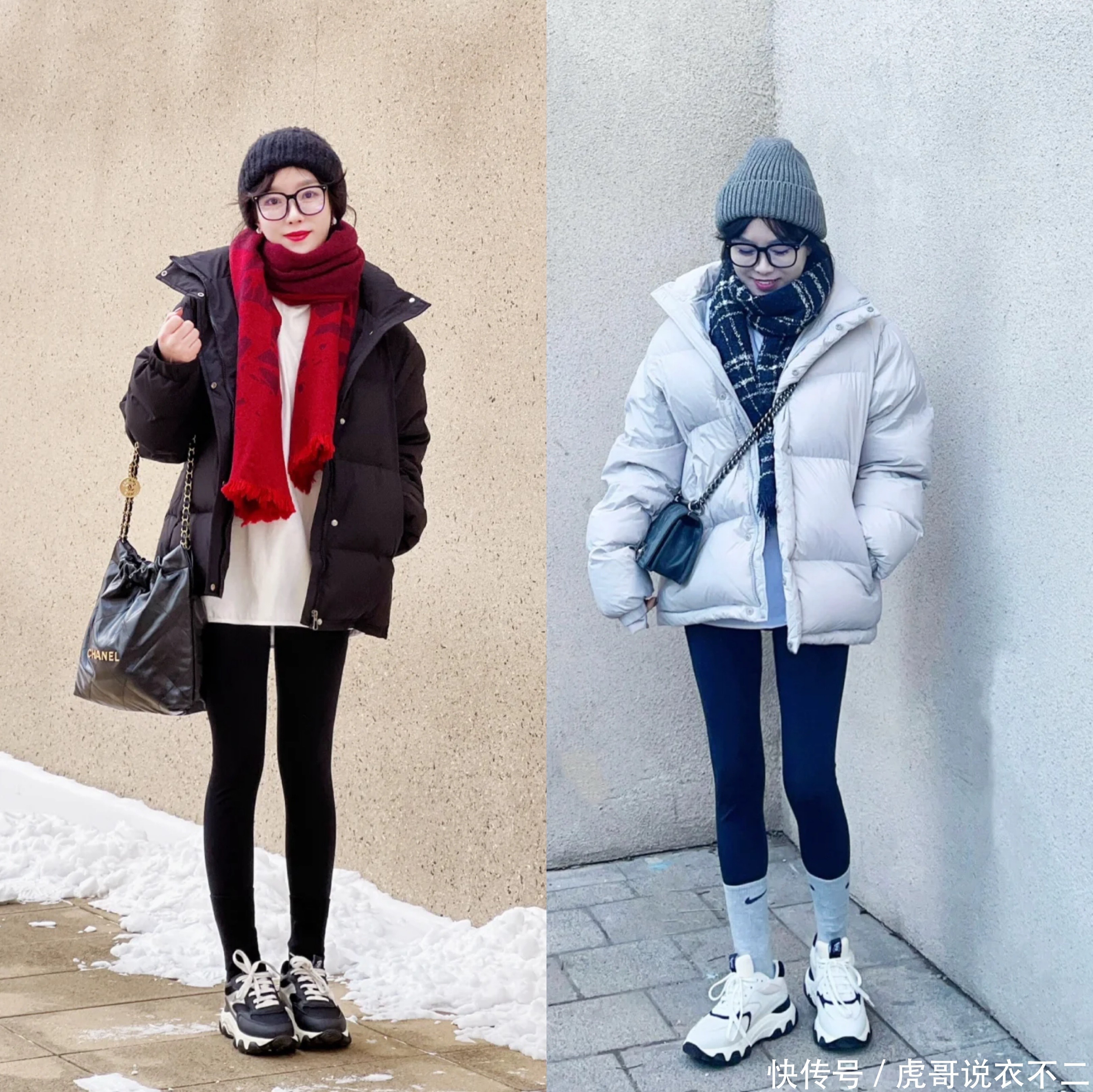 冬季穿搭羽绒服是御寒的不二之选,但羽绒服不免会显痴肥,是以罗致搭配瑜伽裤,可以打造上宽下窄的遵循,再踩一对畅通鞋,合适用领巾点缀,无龄感穿搭,50岁的女性也能阐述30岁的气质,冬季氛围感十足。