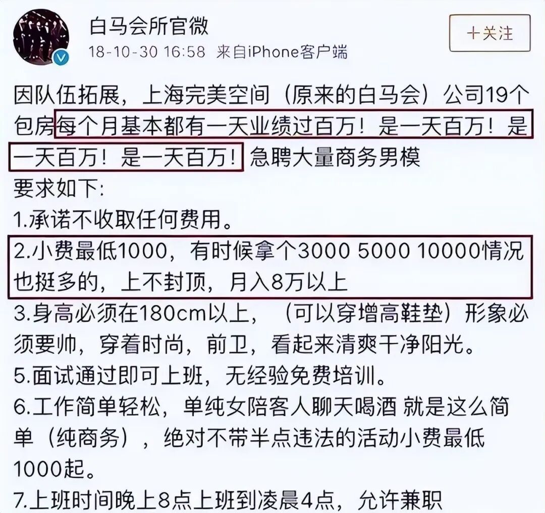 《起底上海白马会所:职工全是男生 只就业女性顾主》北京后生报